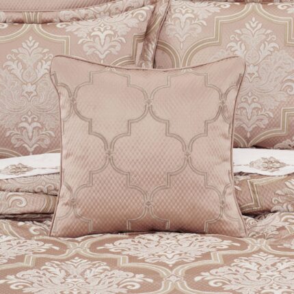 Rosewater Blush Square Embrllished Decorative Throw Pillow 18″ x 18″