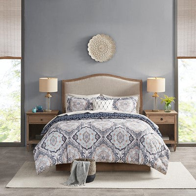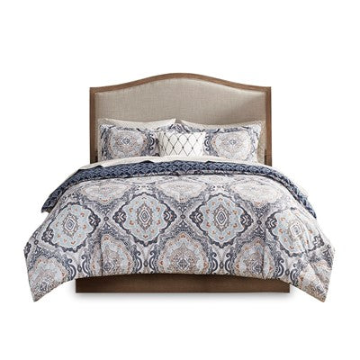 Madison Park Essentials Titus Reversible Comforter Set with Bed Sheets in Navy, Cal King MPE10-869