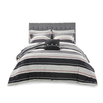 Madison Park Essentials Dalton Comforter set with two decorative pillows in Gray / Charcoal, Queen MPE10-851-AR