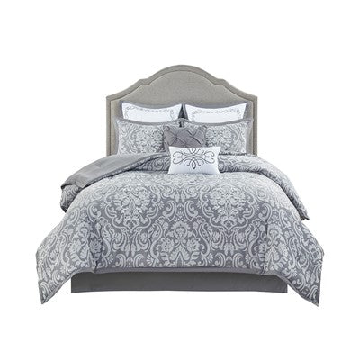 Madison Park Flourish 8 Piece Jacquard Comforter Set in Gray, Cal King MP10-7276