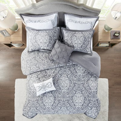 Madison Park Flourish 8 Piece Jacquard Comforter Set in Gray, Queen MP10-7274
