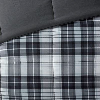 Madison Park Essentials Lilia Reversible Comforter Set with Cotton Bed Sheets in White / Charcoal, Twin MPE10-799