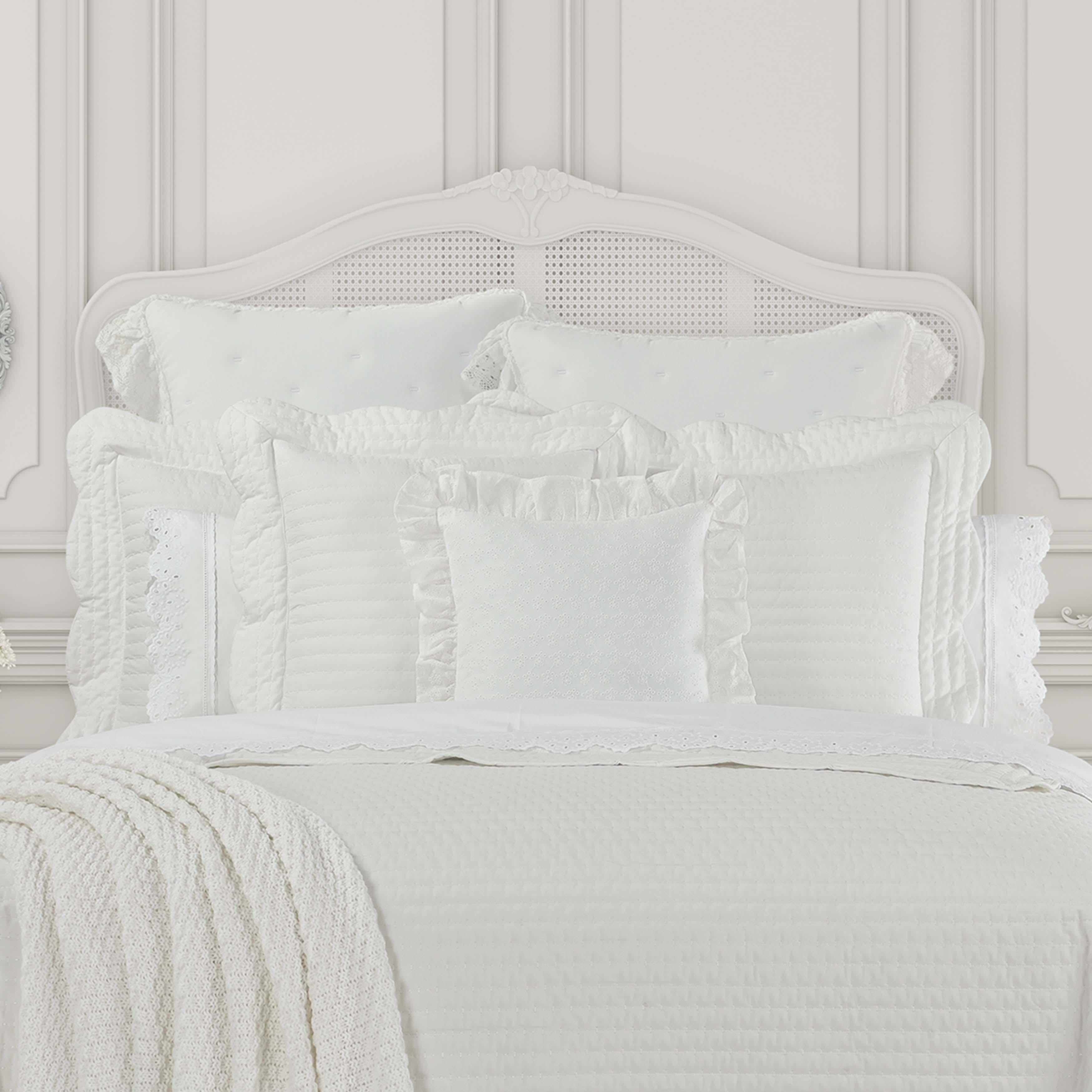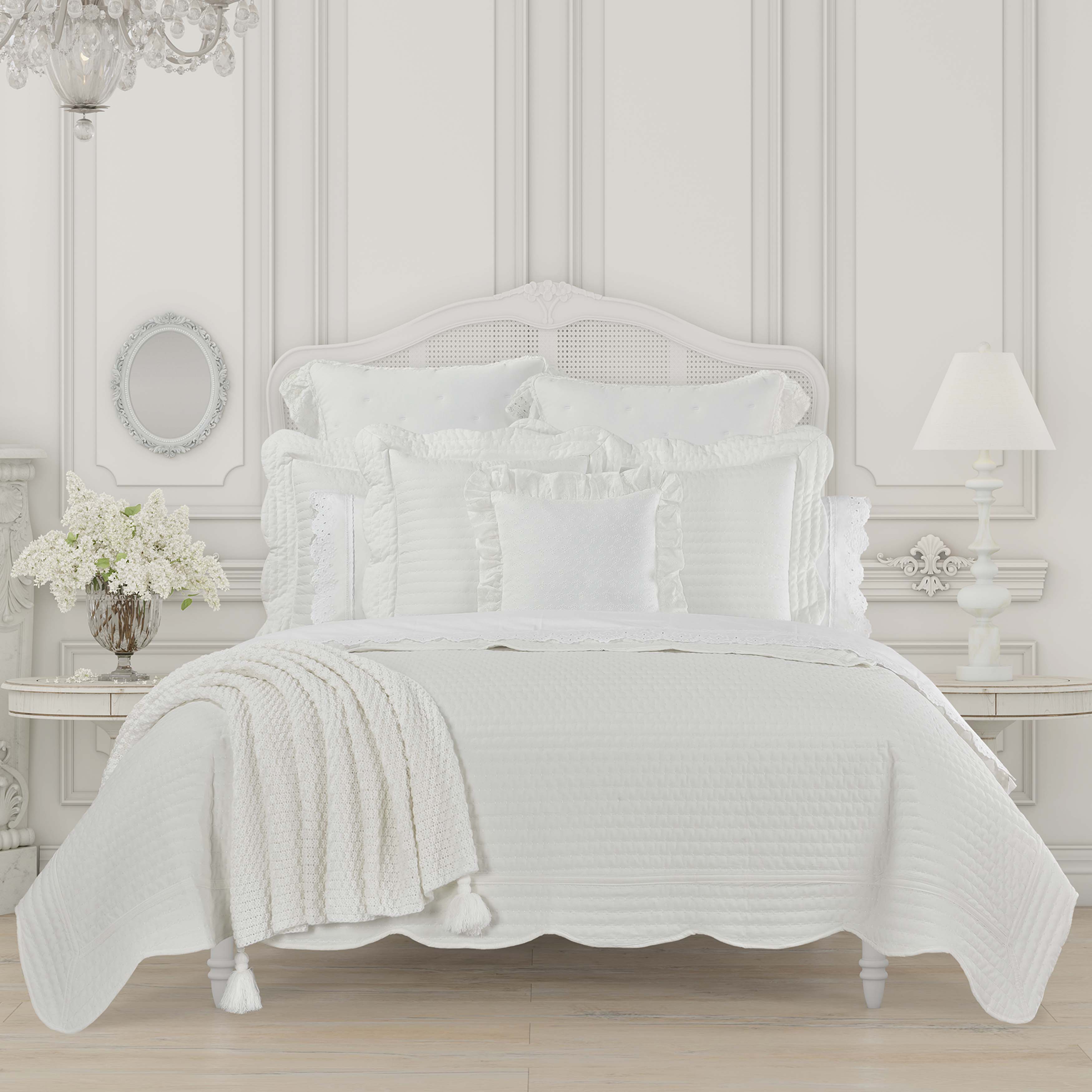 Frame your bed with the relaxed scalloped border of the amherst quilt. Featuring a timeless farmhouse style white cotton center, with a 5‚¬� scallop trim on all four sides, with rounded corners for a beautiful drape look. Soft pre-washed cotton on both sides gives this lightweight layer an irresistibly smooth hand feel. Available in multiple color options to match your decor, a colored thread is used for the intricate channel quilt stitching, and the reverse fabric matches the border for a touch of color. Pair this quilt with the amherst quilt pillow shams, and it is easy to mix-and-match with euro shams and throw pillows from the piper & wright collections to create your own unique look.