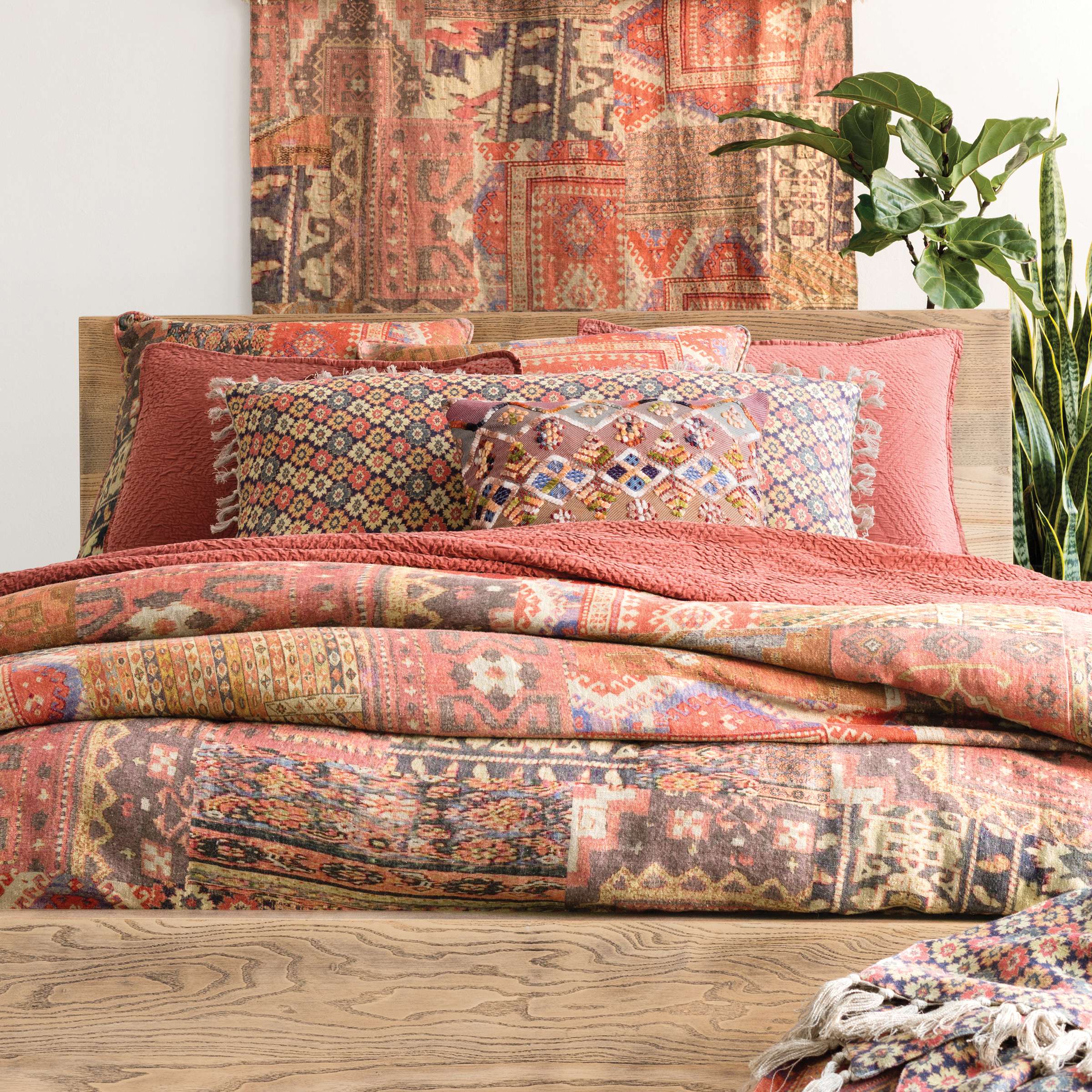 Add a pop of Eastern flair to any bed with this kilim-inspired linen sham. Featuring a colorful patchwork print in shades of java, brick, blue, and terra-cotta, this sham mixes effortlessly with our Laundered Cotton throws, Linen Mesh coordinates, and Anatolia decorative pillows and throw.