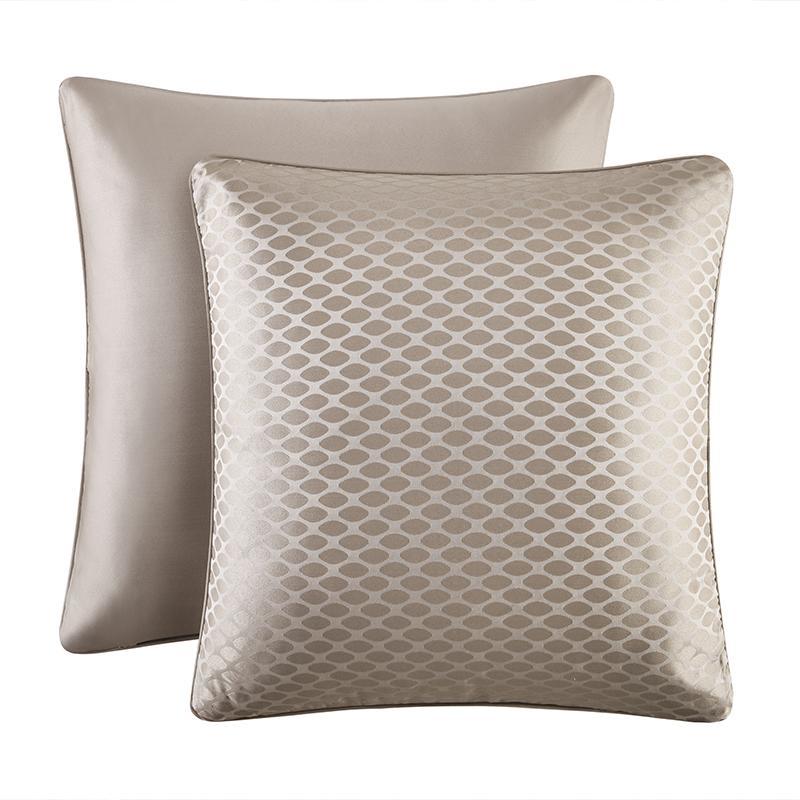 Traditional meets modern in the astoria euro sham from J. Queen new york. A taupe ground features an overlay of an ivory diamond netting pattern that adds an understated element of sophistication.