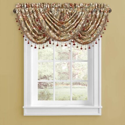 The boudoir pillow has the printed floral jacobean centered on the face. Woven solid gold fabric is on either side of the printed jacobean.