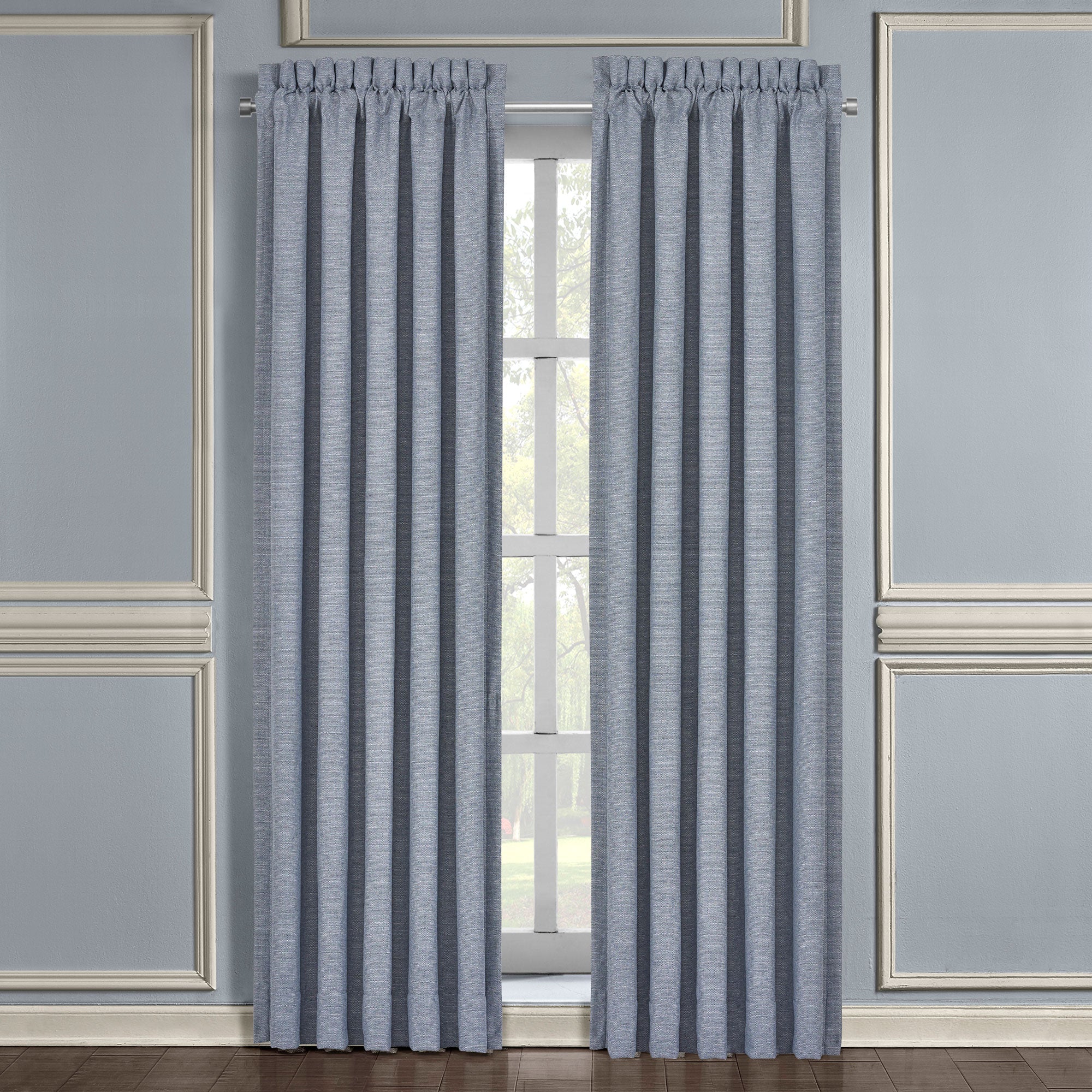The Aurora Window Panel Pair Is Simple Yet Sophisticated And Adds Luxurious Elegance To Your Home Decor. This Beautiful Woven Solid Curtain Features A Blue Chambray Look, Complimenting The Aurora Bedding Set By J. Queen New York. These Lined Panels Include Tiebacks To Create An Open Airy Look And Are The Perfect Finishing Touch To Complete An Updated Traditional Look. The Curtains Will Keep Your Room Cool And Comfortable By Filtering Light And Providing Ideal Shade. The 3″ Header And 3″ Rod Pocket Make These Panels Easy To Hang. Pair With The Aurora Window Valance To Complete The Collection.
