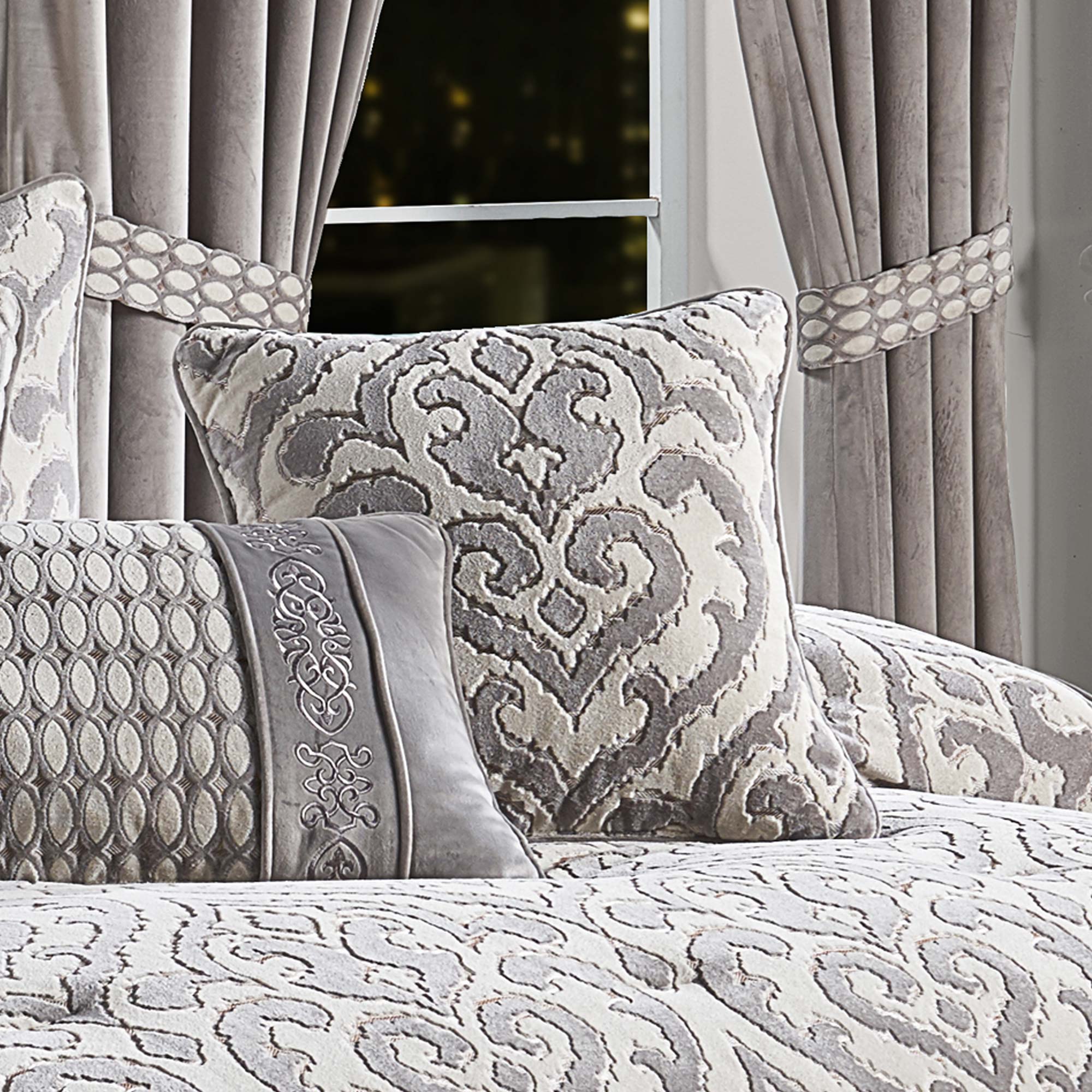 The Belvedere 18 Inch Square Decorative Throw Pillow Is Luxurious And Elegant With An Incredibly Soft Hand From The Woven Velvet Design. This Alluring Medallion Square Pillow Matches Directly To The Top Of Bed Design In A Lovely Silver Tone. The Pillow Offers A Gorgeous Reversible Velvet Diamond Pattern , Adding The Option To Use Both Sides And Finished With A 1/4″ Silver Gray Piping. Pair This Pillow With The Belvedere Bedding Set By J. Queen New York For A Showstopper Complete Look.