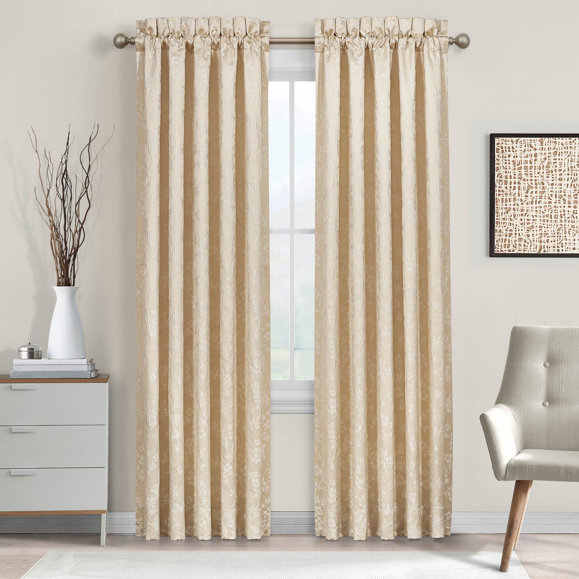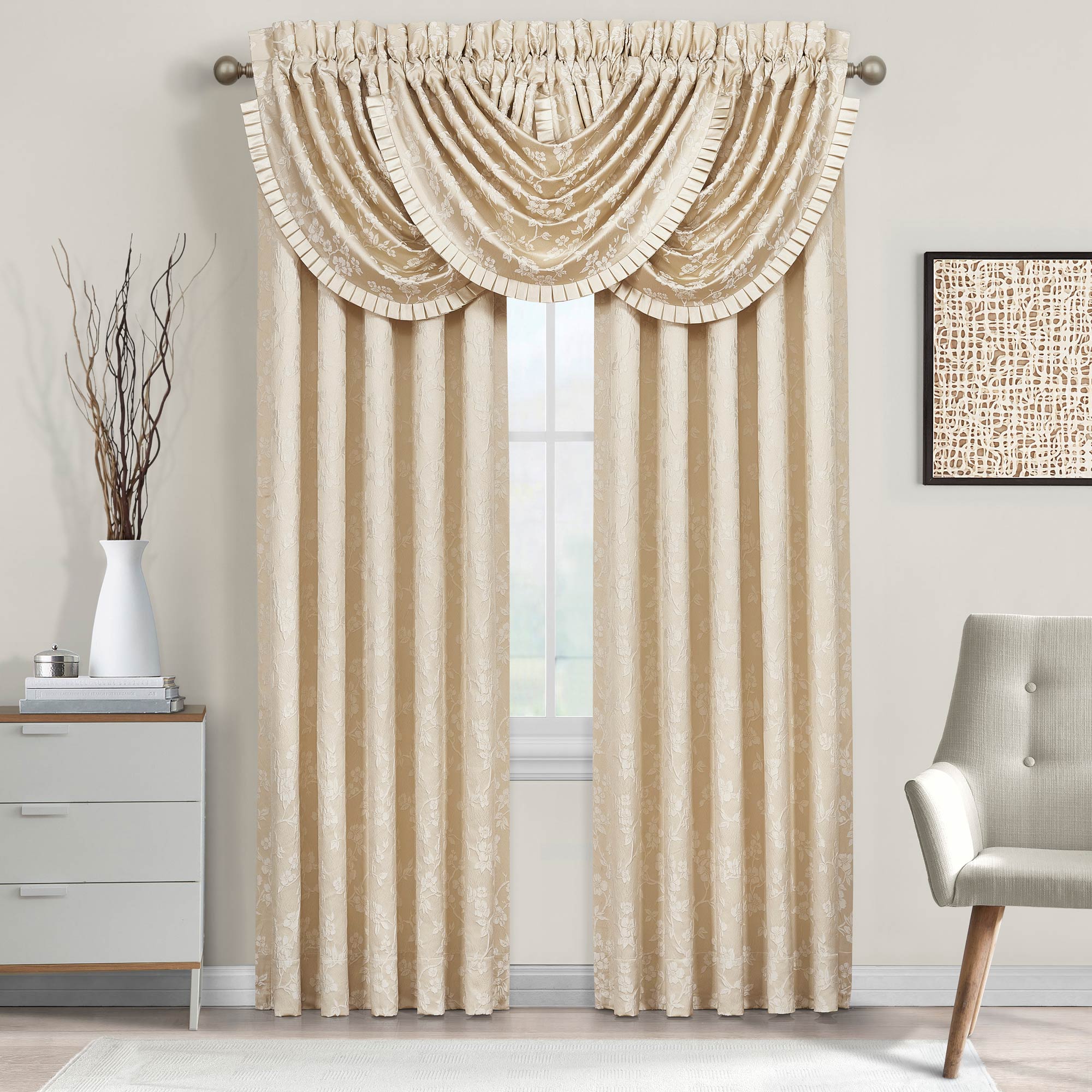 The Blossom Window Panel Pair Is Sophisticated And Clean With Its Dramatic Use Of A Woven Jacquard All Over Floral Pattern. This Beautiful Woven Jacquard Floral Is Rich And Soft With An Ivory Satin Finish. These Lined Panels Include Tiebacks Which Are The Perfect Finishing Touch To Complete This Traditional Look, Filtering Light And Keeping You Comfortable Throughout The Day. The 3″ Header And 3″ Rod Pocket Make These Panels Easy To Hang. Pair This Window Treatment With The Blossom Bedding Set By J. Queen New York For A Complete Look.