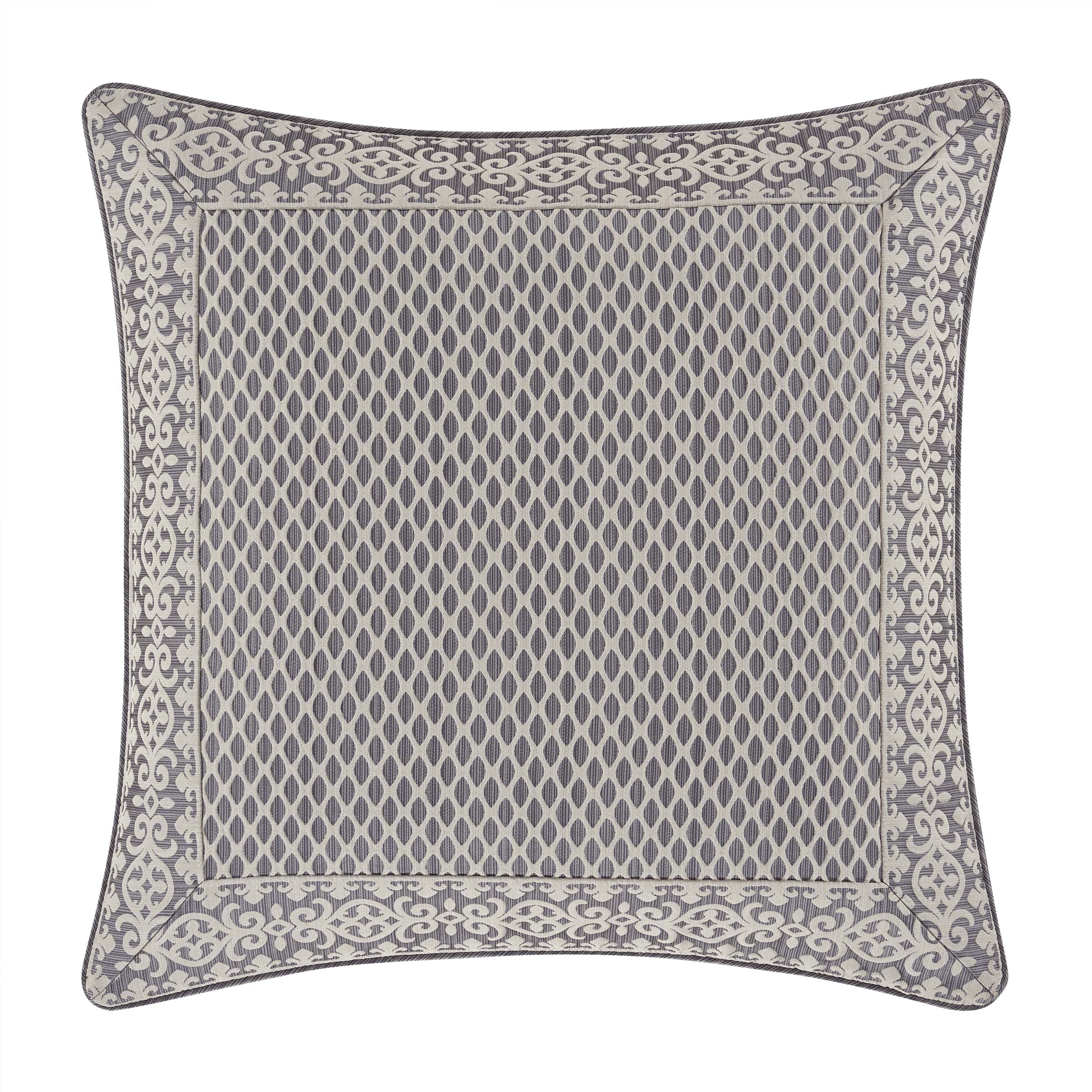 The houston euro sham is casual yet sophisticated with its use of charcoal and cream colors. This beautiful sham is rich with a traditional woven scroll stripe border surrounding a lattice pattern center. This pillow sham reverses to a woven charcoal stria and is finished in 1/4″ piping and a hidden zipper. Pair this euro sham with the houston bedding set by five queens court for a complete look.