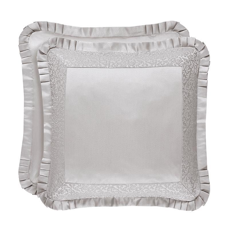 The la scala euro shams add dimension and drama to the ensemble. An elegant satin fabric is framed with an intricate border and has a pleated satin flange adding a luxurious finish. the reverse of the sham is a smooth, soft fabric and is finished with a hidden zipper for comfort.