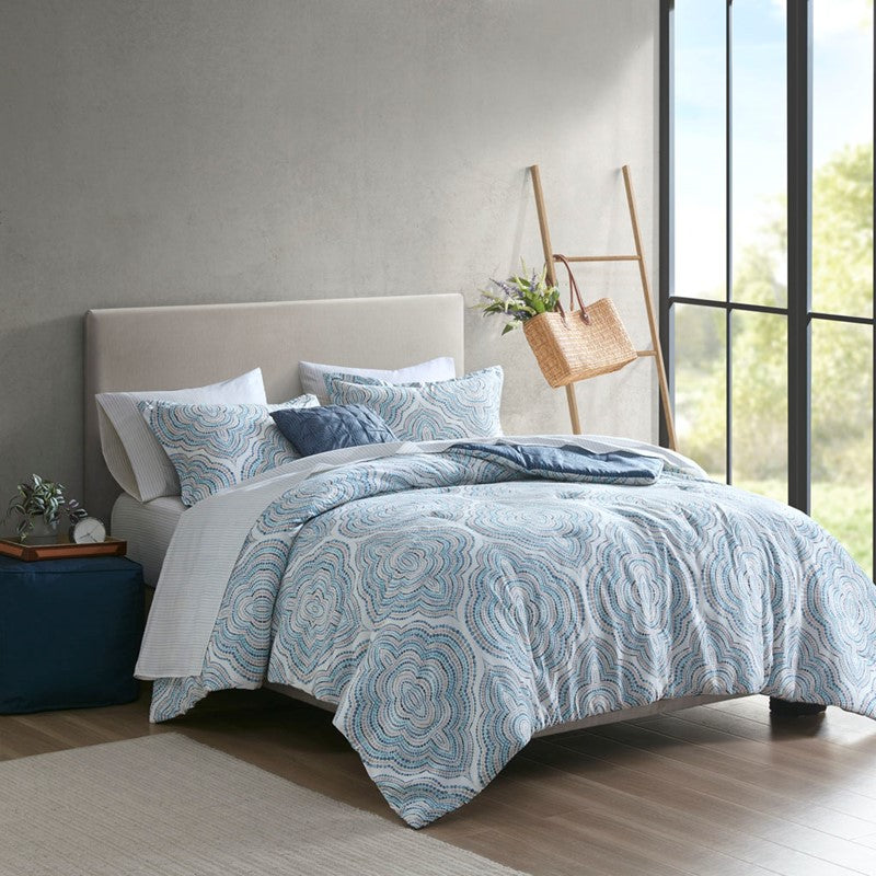 Madison Park Essentials Domino Comforter Set with Bed Sheets in Blue, Queen MPE10-963
