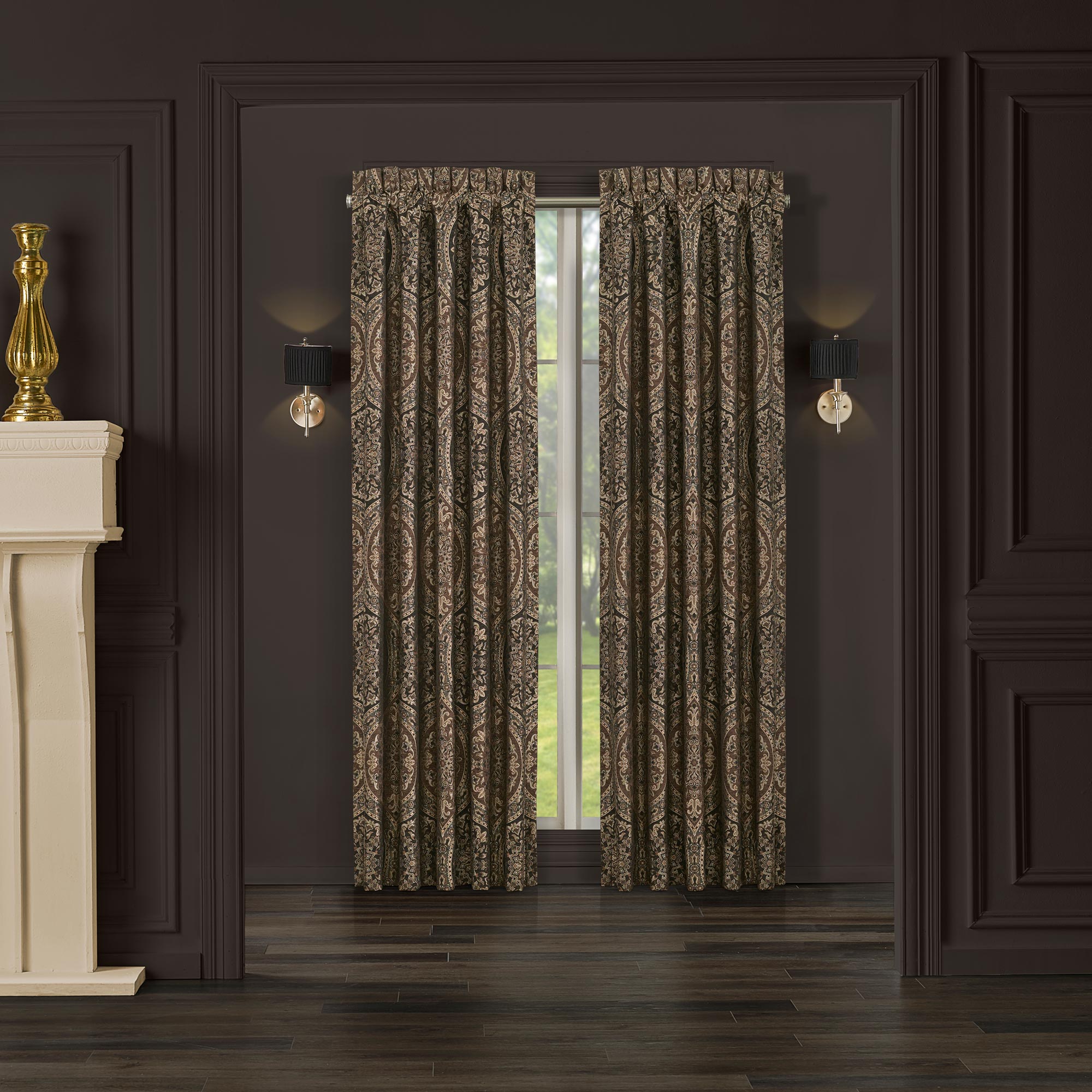 The Mahogany Window Panel Pair Is Exquisite With Its Fine Details And Sophisticated Use Of Chocolate And Gold Colors. This Beautifully Woven Jacquard Medallion Fabric Is Truly Timeless And Rich With Its Soft Chenille Finish. These Lined Panels Include Tiebacks To Create An Open Look, And They Provide Ample Room Darkening Shade, Keeping You Comfortable Throughout The Day. The 3″ Header And 3″ Rod Pocket Make These Panels Easy To Hang. Pair These Curtains With The Mahogany Valance And Bedding Set By J. Queen New York For A Complete Look.