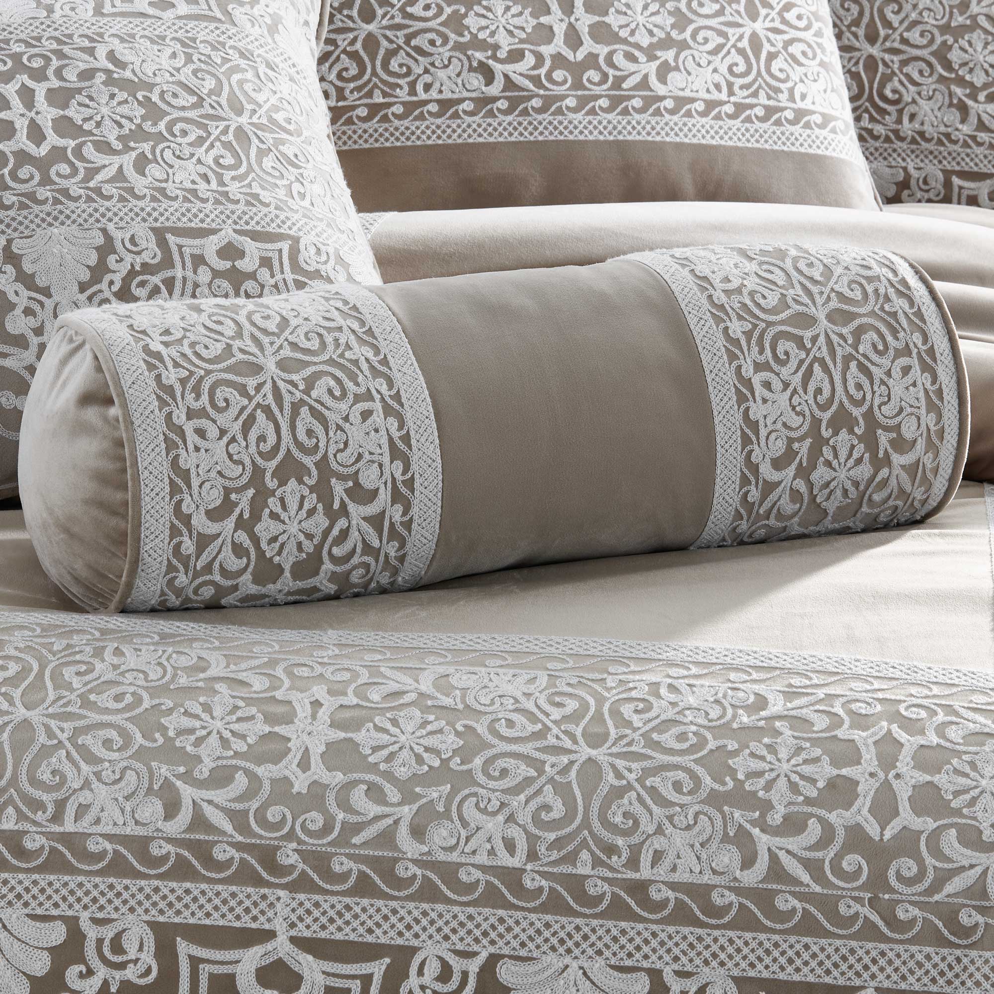 The Opulence Neckroll Pillow Is The Perfect Utility Fashion Accessory To Add A Touch Of Dimension To Complete The Look Of Your Bed. Constructed In A Plush Velvet Linen Color, With Two Bands Of Crewel Cream Color Highly Detailed Embroidery, Creating An Understated Elegance To Your Decor. Pair This Pillow With The Opulence Bedding Set By J. Queen New York For A Complete Look.