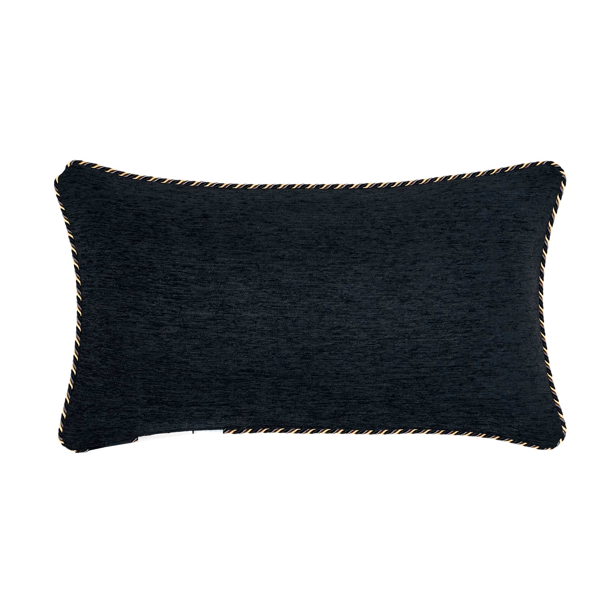 The Savoy Boudoir Pillow Is Uniquely Crafted With A Woven Chenille Black And Gold Foulard Design, And Is Framed With A Tri-Colored Twist Cord For Added Detail. The Reverse Side Made With A Solid Black Chenille Which Is Made To Coordinate With The Savoy Bed Set.