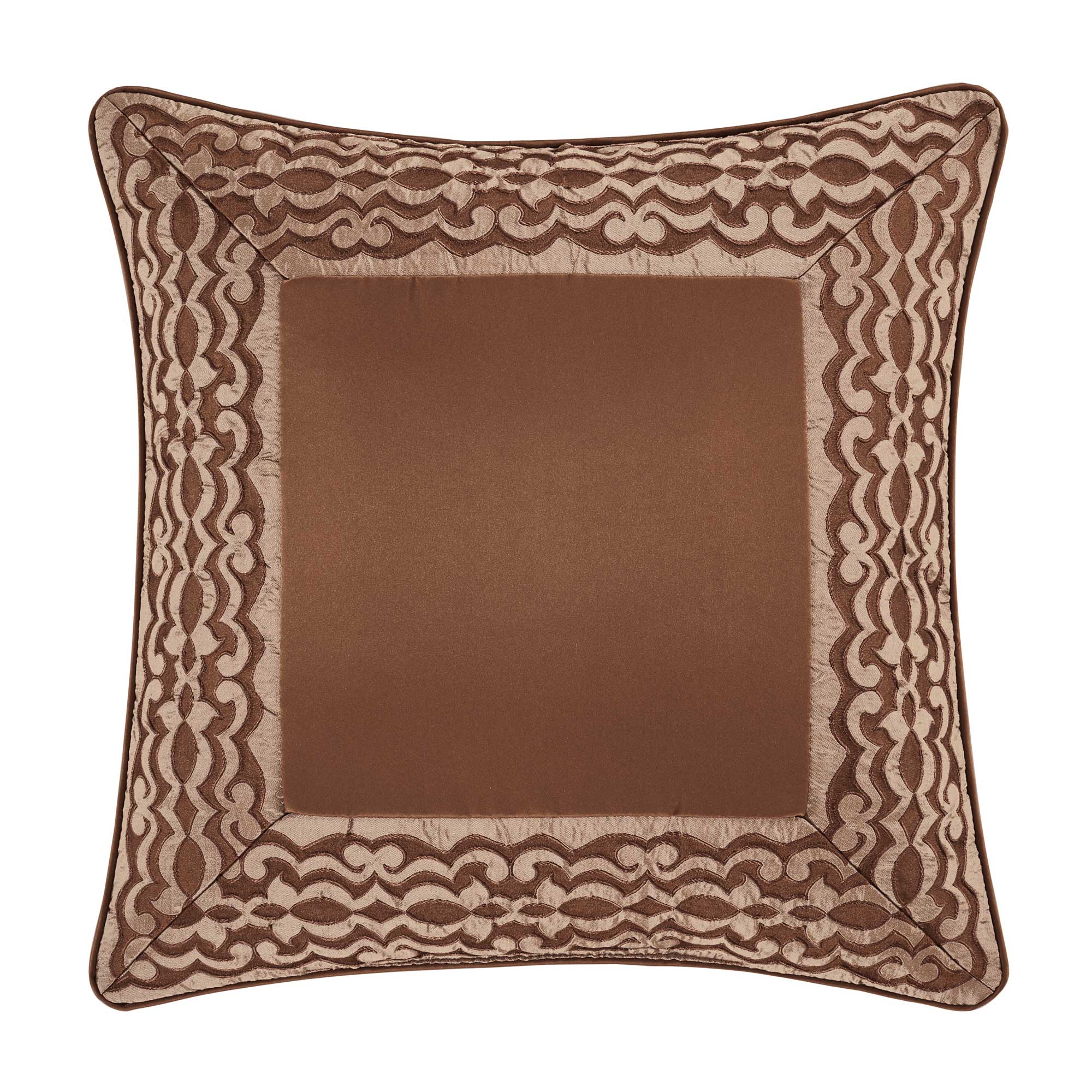 A Generous 20” Square Throw Pillow Is A Perfect Decorating Accessory Not Only To Complete The Bedding Ensemble But As An Elegant Accent In Other Areas Of The Home. Framed And Mitered With A Copper And Beige Woven Damask Border On The Face, A Plush Tonal Satin On The Reverse And Trimmed On All Four Sides With Satin Piping. Pair This Pillow With The Surano Bedding Set By J. Queen New York For An Updated Luxe-Traditional Look.
