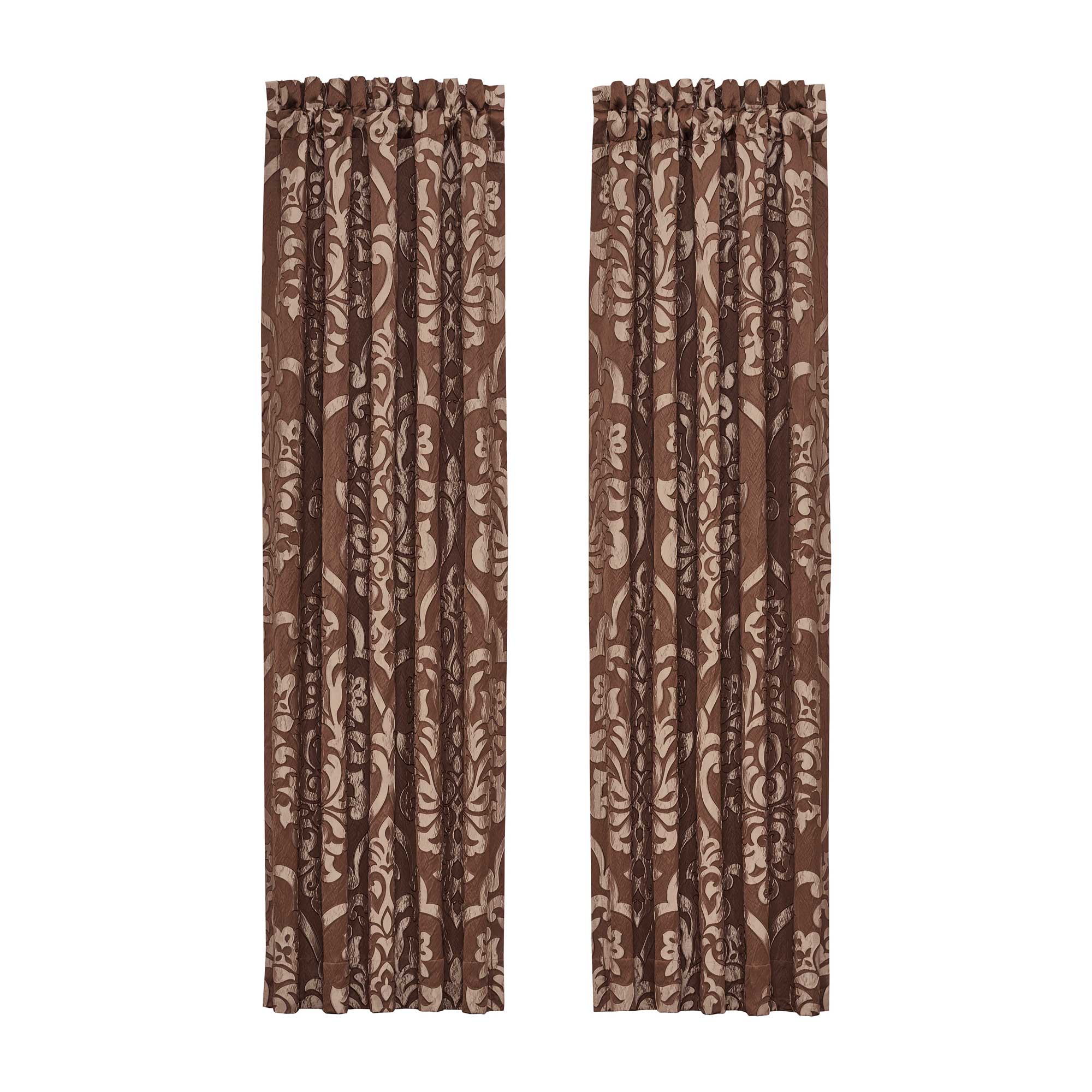 The Surano Window Panel Pair Is Simply Stunning With Its Fine Details And Sophisticated Use Of Soft Copper And Beige Colors. A Timeless Woven Damask Pattern Is Crafted With A Unique Fabrication Process, Giving The Appearance Of An Appliqued Technique To Finish The Grand Scale Design. The Panels Are Lined For Room Darkening Privacy, Include Tiebacks, And The 3″ Header And 3″ Rod Pocket Make These Panels Easy To Hang. Pair These Panels With The Surano Bedding Set By J. Queen New York For A Complete Look.