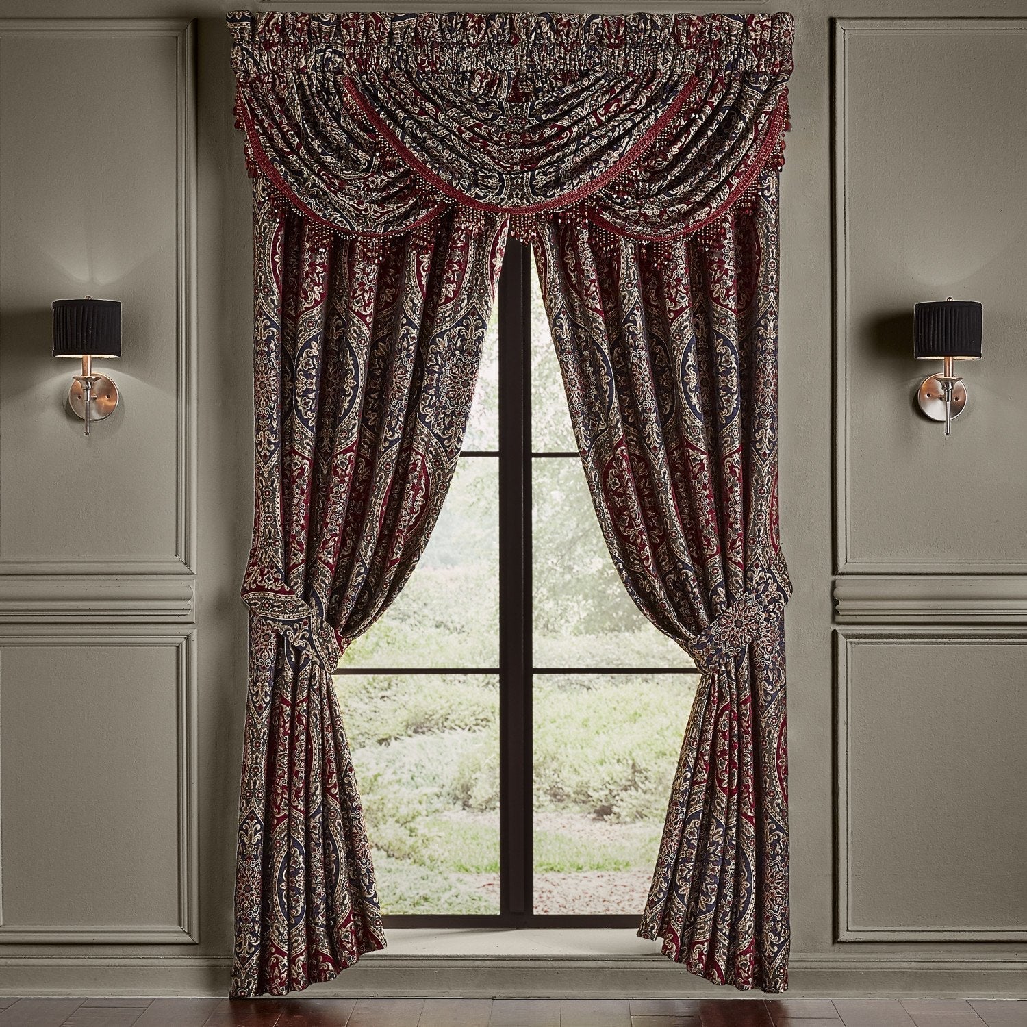 The Taormina 4 piece comforter set features an intricately woven damask in shades of navy, red and glimmering golds. The rich chenille mingled with high twist yarns creating depth and an array of textures making this baroque design a classic. Paired with matching hidden zipper pillow shams and a chenille tailored bedskirt in navy, the Taormina Collection is a showstopper. Coordinate shams, throw pillows and window treatments are available separately.